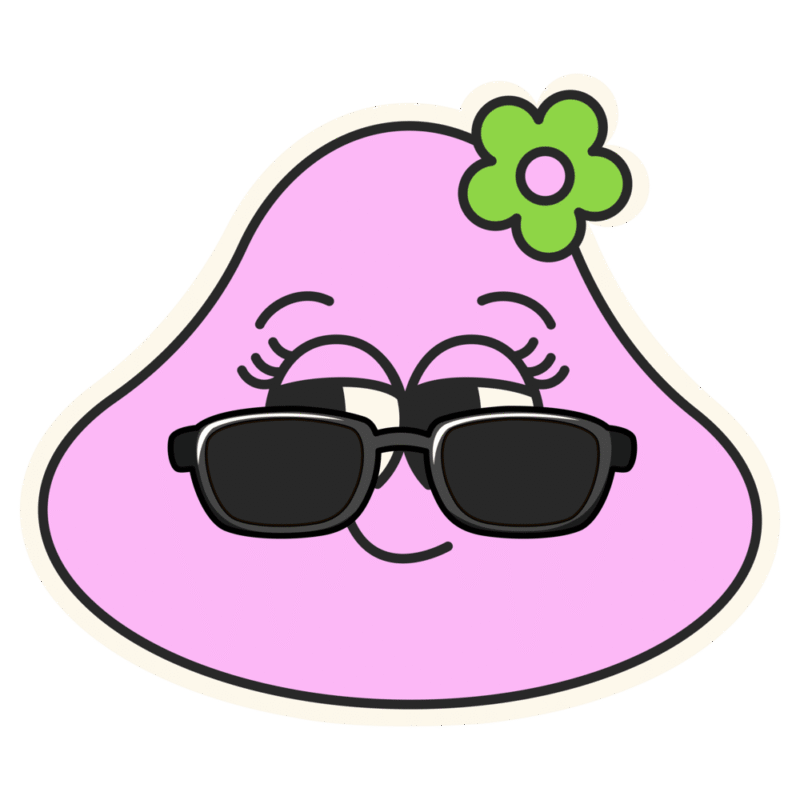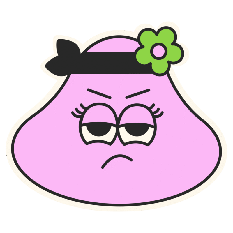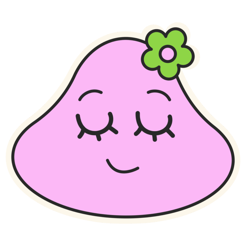 GIGI, a serene lavender blob with a flower. She is a strong leader. Her true goal, however, was a healthy, balanced, and peaceful life. She gracefully handled career demands, letting negativity pass by. Gigi’s strength lay in protecting her inner calm from any chaos.