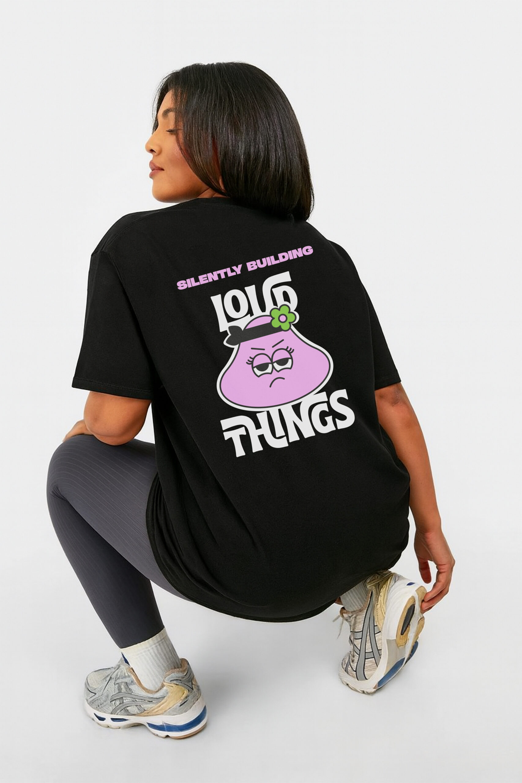 - Back print: “Silently Building Loud Things” with Rahraha’s signature character graphic