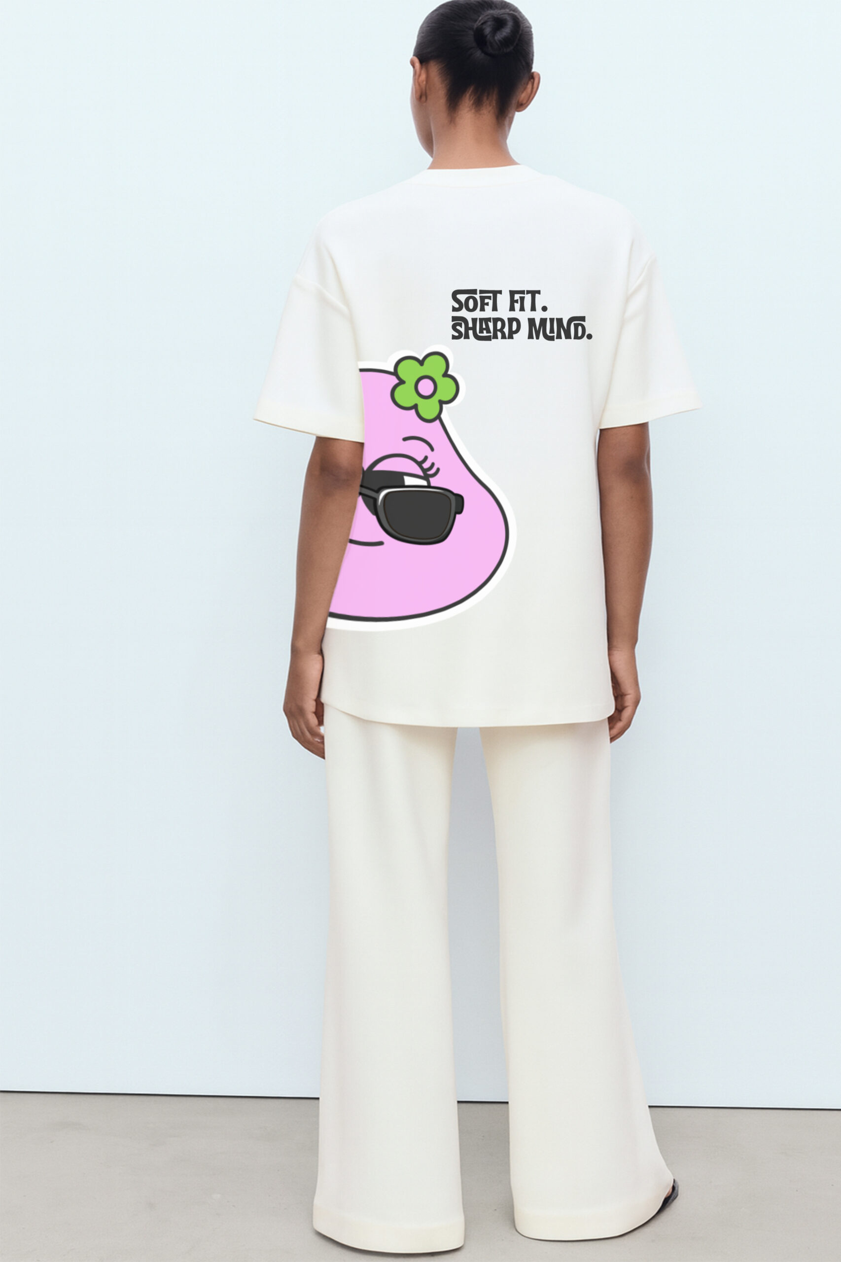 Made from breathable premium cotton with a relaxed oversized cut, this tee pairs softness with structure. The slogan on the back — “Soft Fit. Sharp Mind.” — celebrates mindful movement, while the Rahraha Chill character brings an expressive touch of personality to your look.